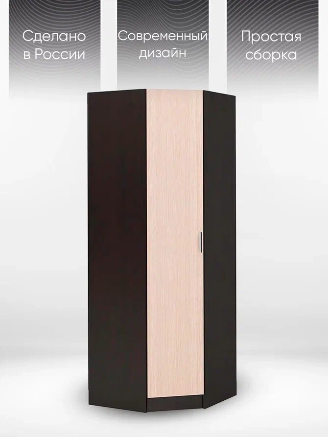 Шкаф для одежды угловой одностворчатый Симба (850*2000*850), шимо темный/кофе с молоком