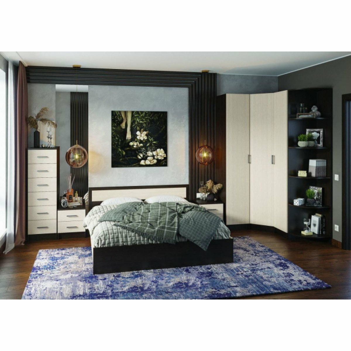 Спальня вегас шкаф угловой (0,85х2,0х0,85) фасад МДФ кофе С молоком/корпус шимо темн