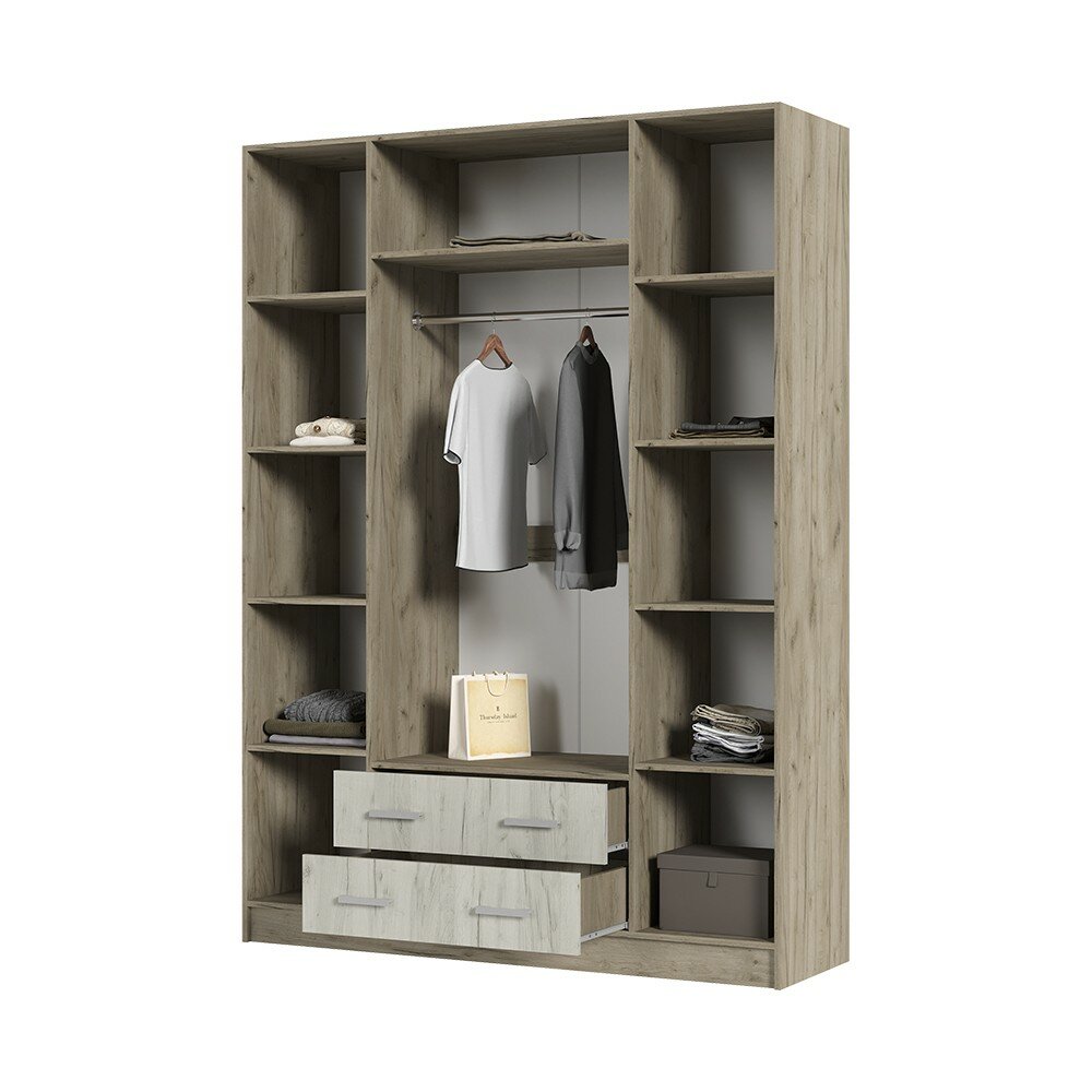 Шкаф распашной Квадро Шимо Светлый/Шимо Темный ЛДСП, со штангой, полками, ящиками, для спальни, гостиной 1600х2200х505 стендмебель