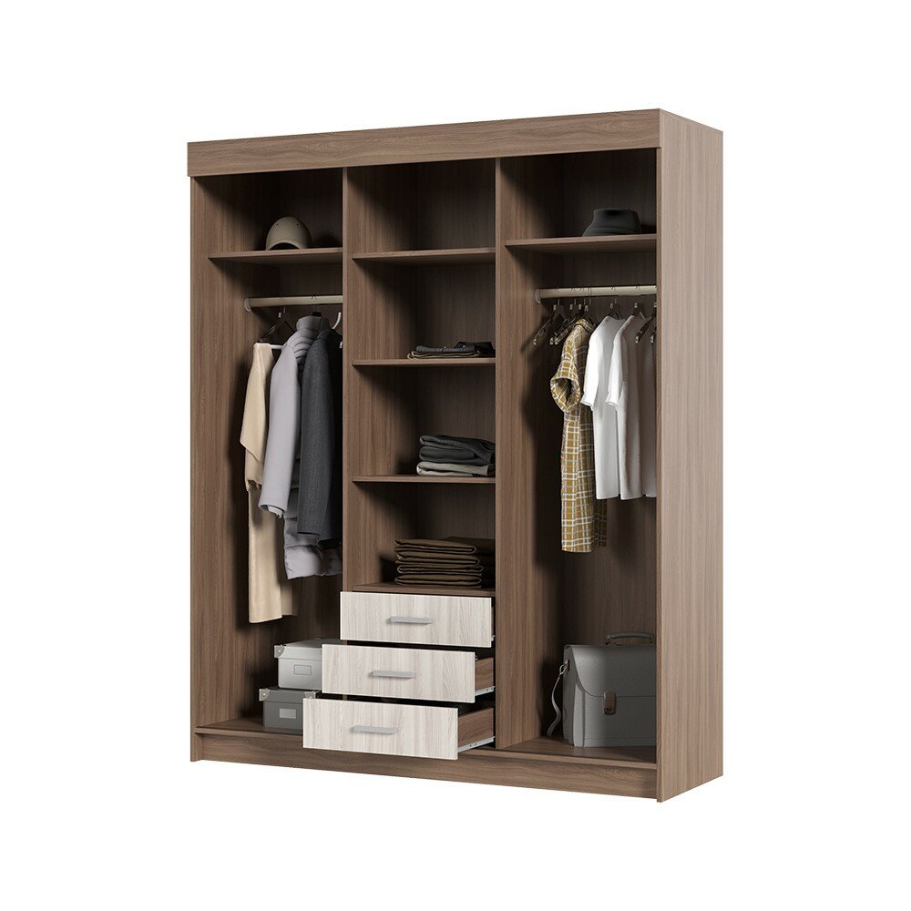 Шкаф распашной Квадро Шимо Светлый/Шимо Темный ЛДСП, со штангой, полками, ящиками, для спальни, гостиной 1600х2200х505 стендмебель
