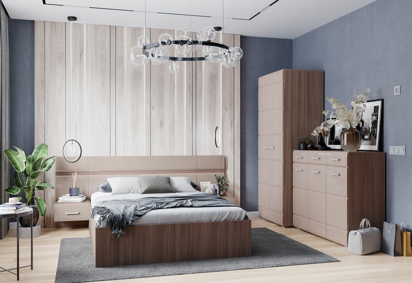 Спальня вегас шкаф угловой (0,85х2,0х0,85) фасад МДФ кофе С молоком/корпус шимо темн