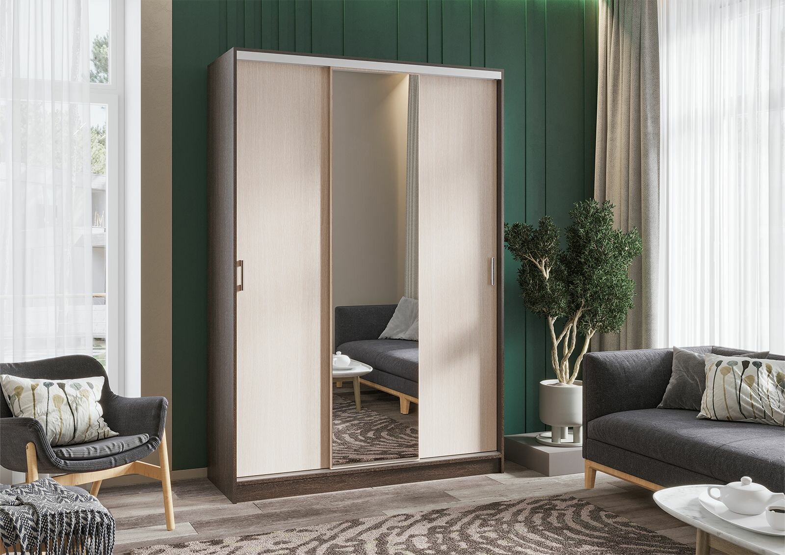 Купить Шкаф-купе Альянс 1,5 м с зеркалом, венге/белфорт