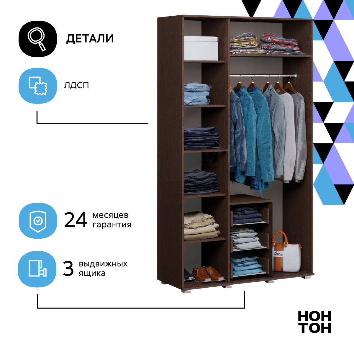 Шкаф для одежды с ящиками Нонтон Белла, венге / дуб беленый 80 см