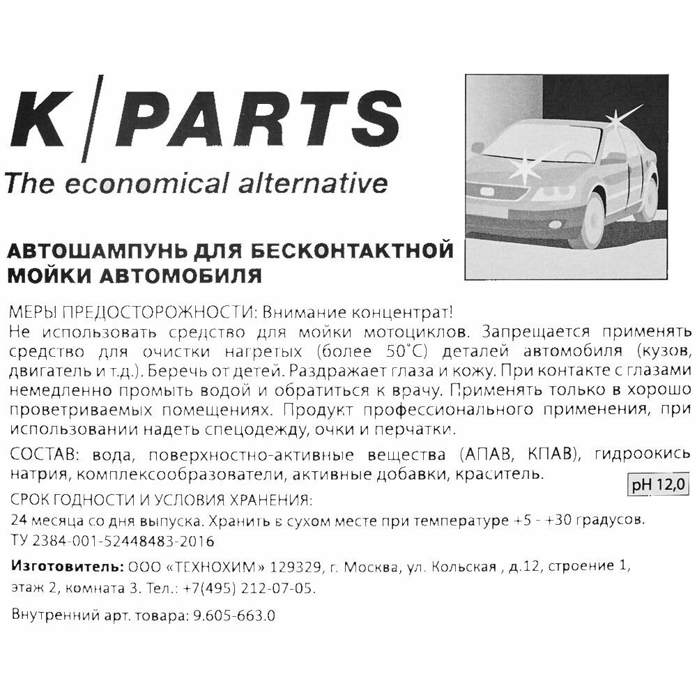 Автошампунь K-Parts Soft 9.605-610.0, объем 1 л, для бесконтактной мойки, концентрированное моющее средство