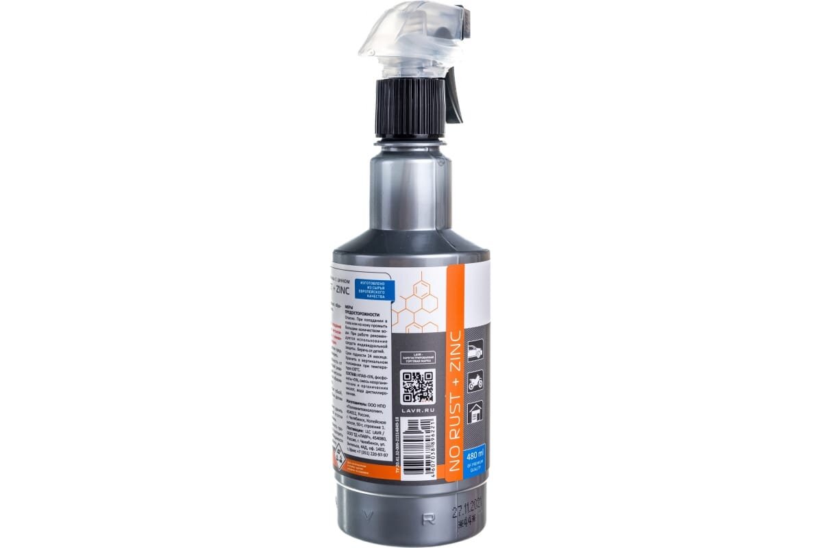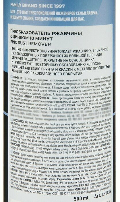 Ln1436 Преобразователь Ржавчины С Цинком 10 Минут Lavr Rust Remover No Rust Zinc+480 Мл. Lavr LAVR арт. LN1436