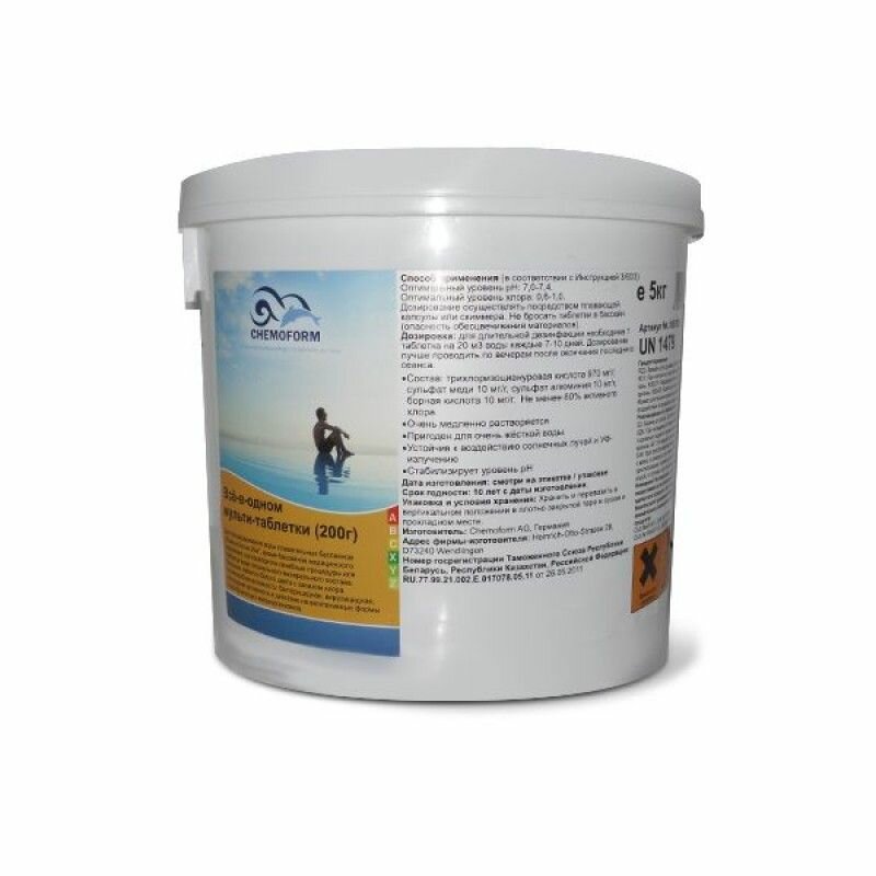 Химия для бассейна Chemoform (0507005 / 0507705) мульти-таблетки, 5кг ведро, табл.200гр, хлор для дезинфекции, флокуляции и борьбы с водорослями