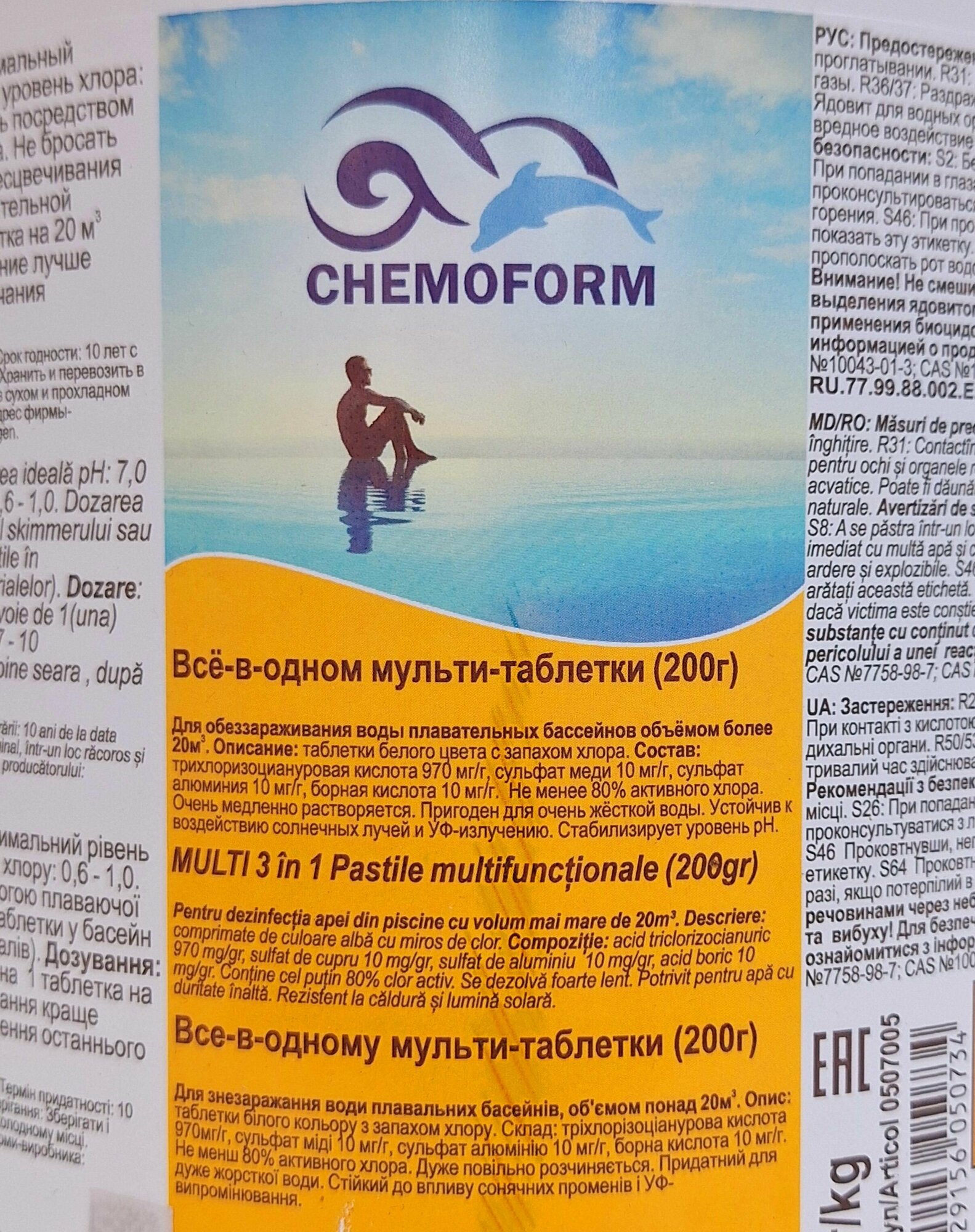 Ниже Вы можете прочитать отзывы на Мультифункциональные универсальные 3 в 1 хлорные таблетки для бассейна Chemoform Всё-в-одном 200 гр 5 кг, ознакомится с подробными характеристиками, посмотреть интересные обзоры и фотографии на Мультифункциональные универсальные 3 в 1 хлорные таблетки для бассейна Chemoform Всё-в-одном 200 гр 5 кг.
