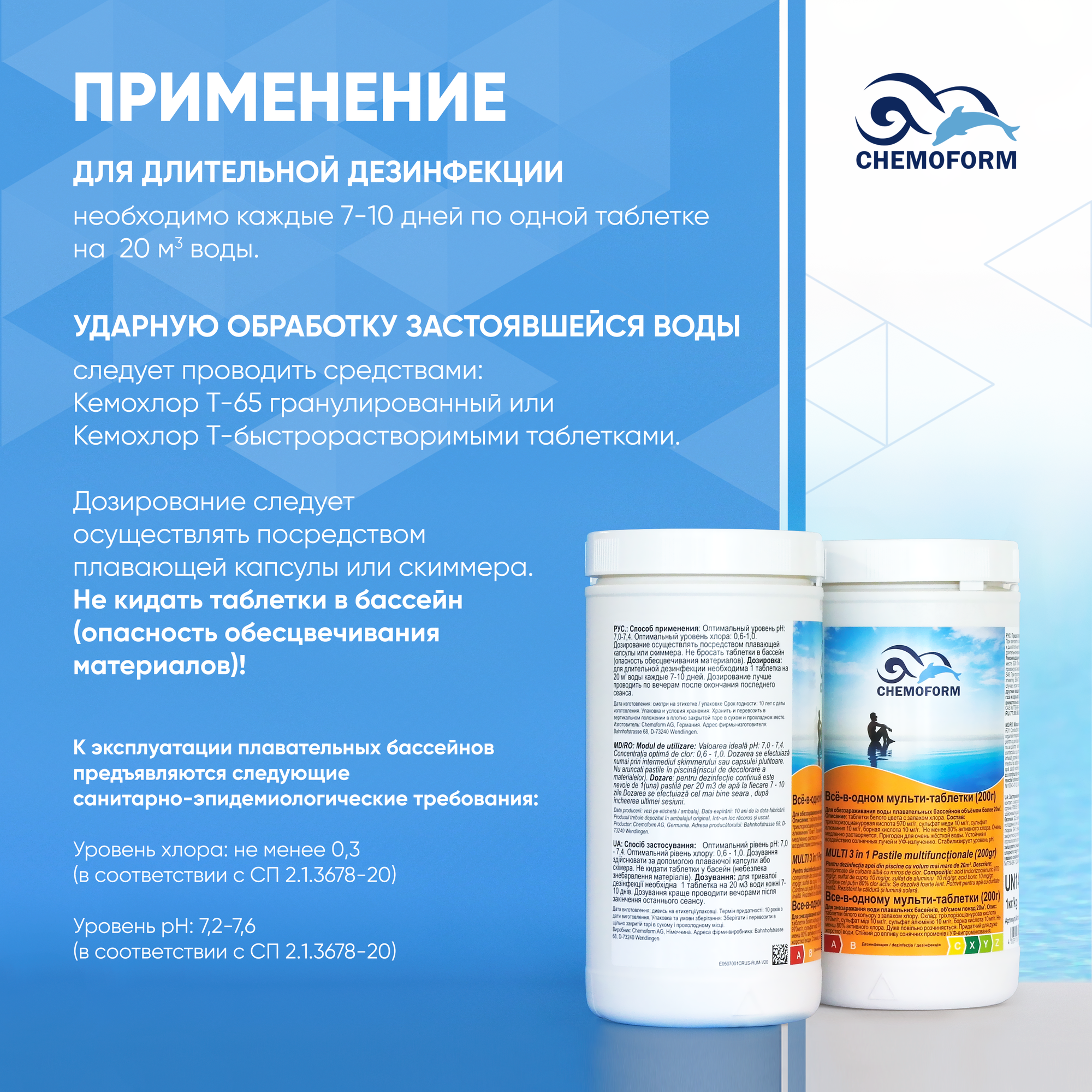 Chemoform "Всё-в-одном мульти-таблетки 200 г" для дезинфекции воды, 1 кг