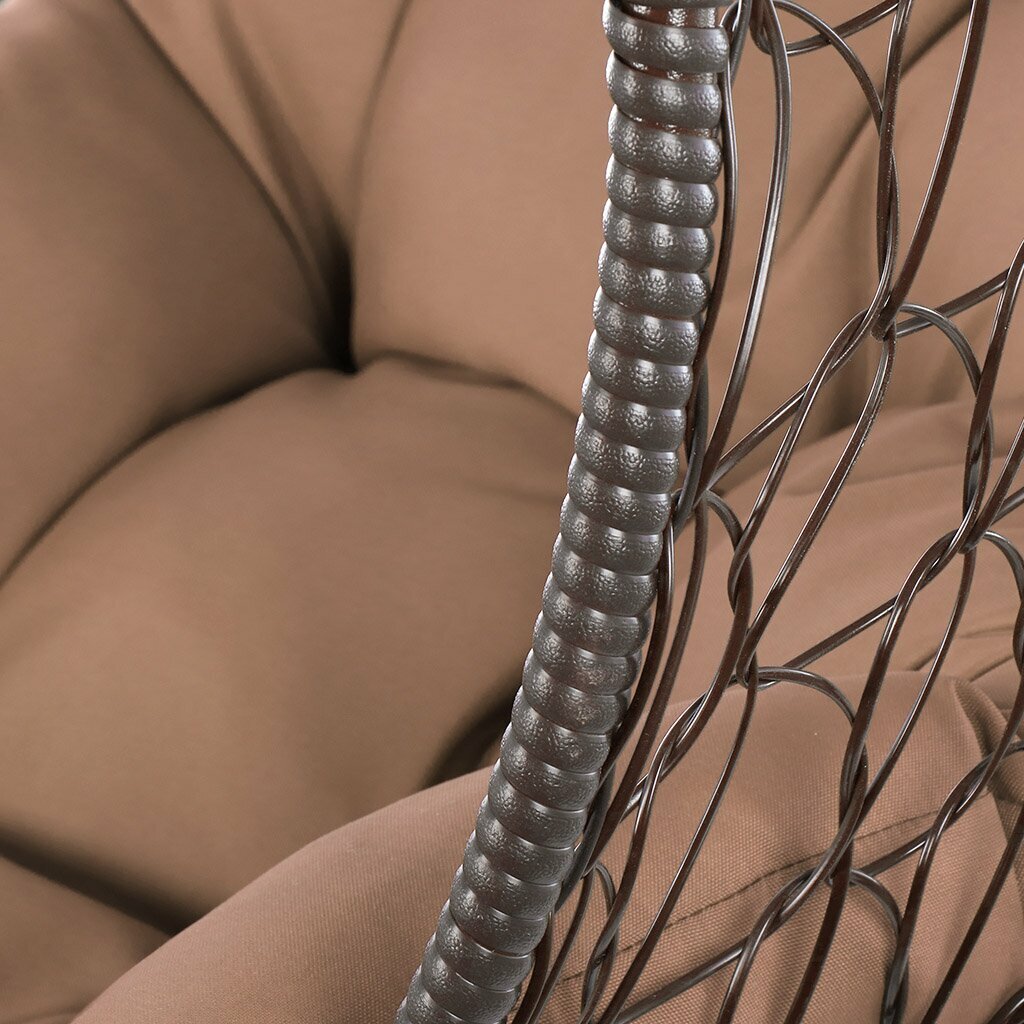 Подвесное кресло из ротанга "Капля" коричневое с бежевой подушкой M-Group
