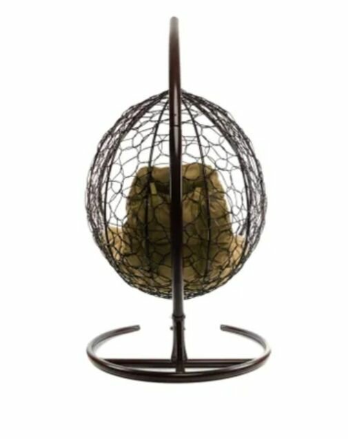 Подвесное Кресло-Капля с ротангом Коричневое с Бежевой подушкой