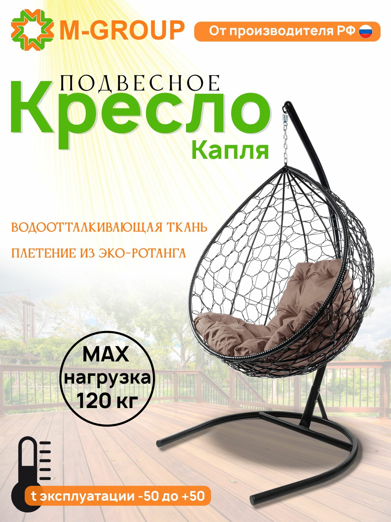 Подвесное кресло M-group капля с ротангом коричневое коричневая подушка