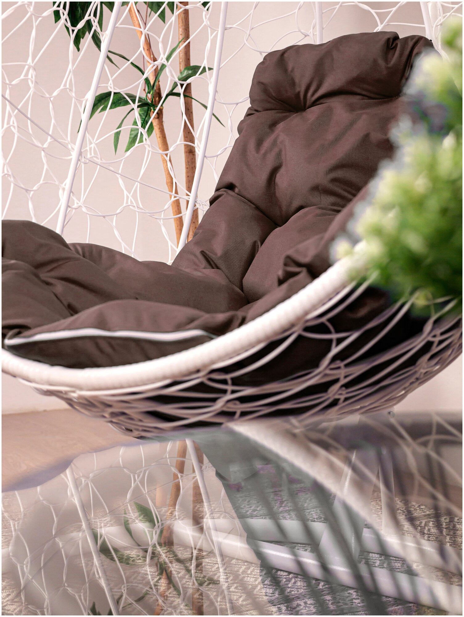 Подвесное кресло капля ротанг белое (без стойки), коричневая подушка