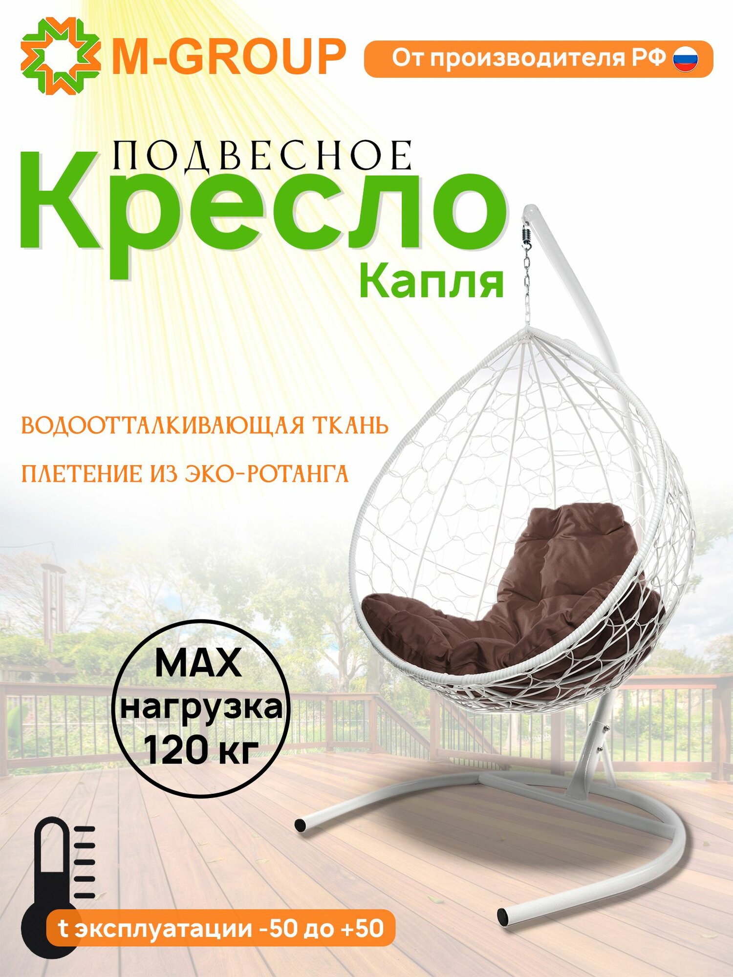 Подвесное кресло M-group капля с ротангом белое коричневая подушка