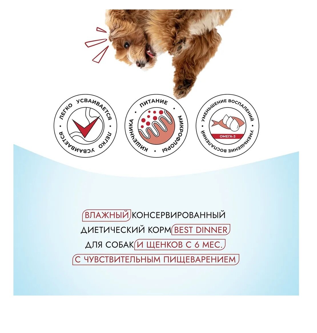 Влажный корм Best Dinner Vet Profi Gastrointestinal для любых собак, нежный паштет с индейкой, при нарушение ЖКТ 100гр