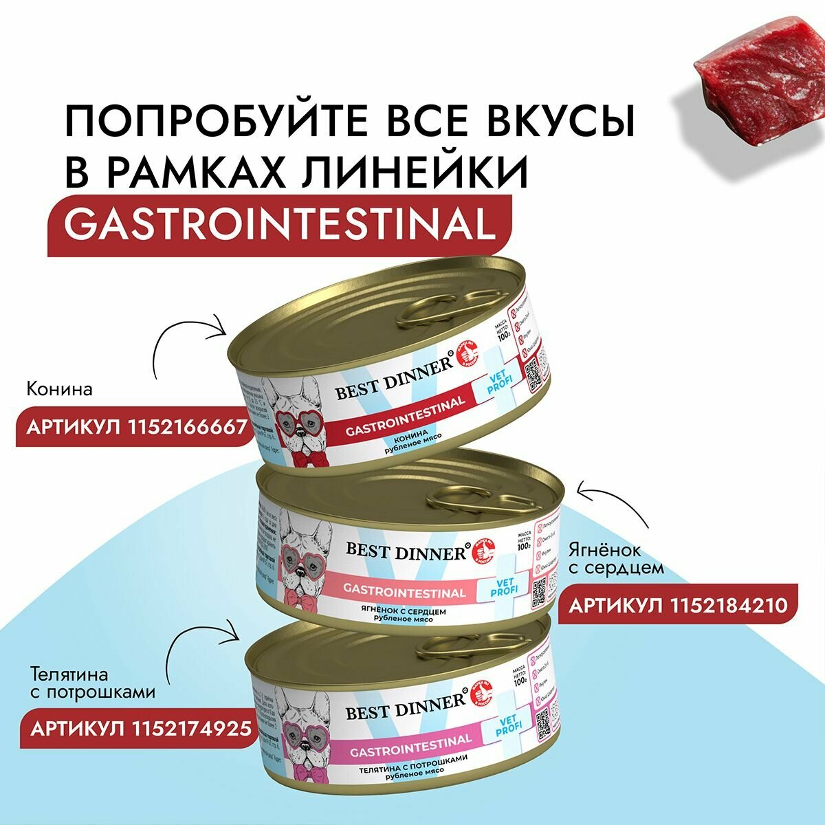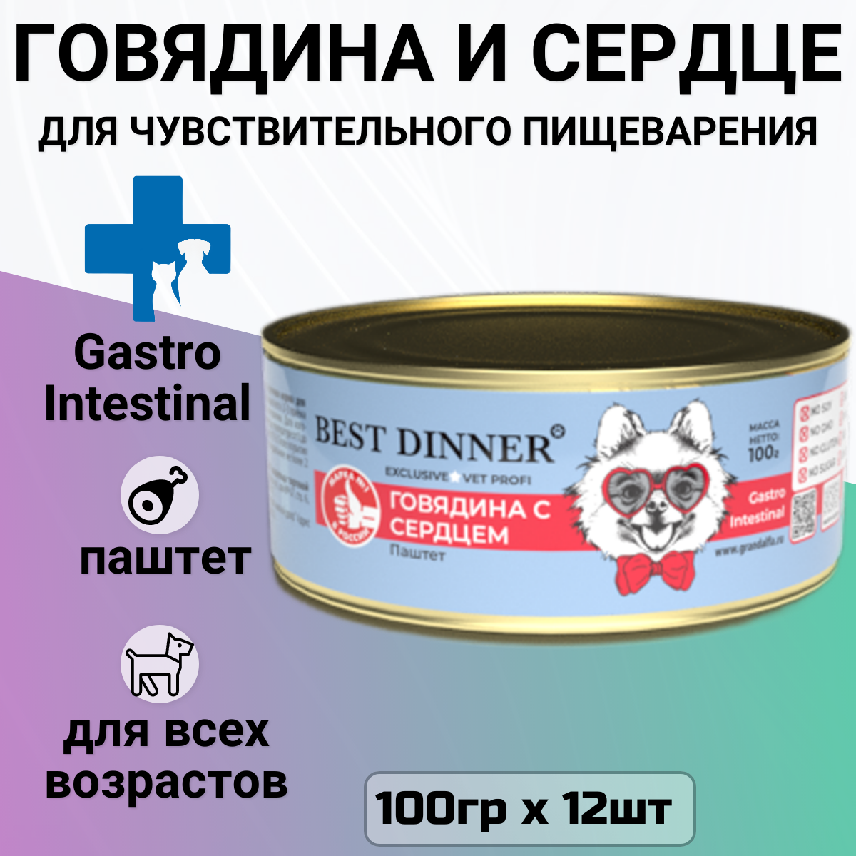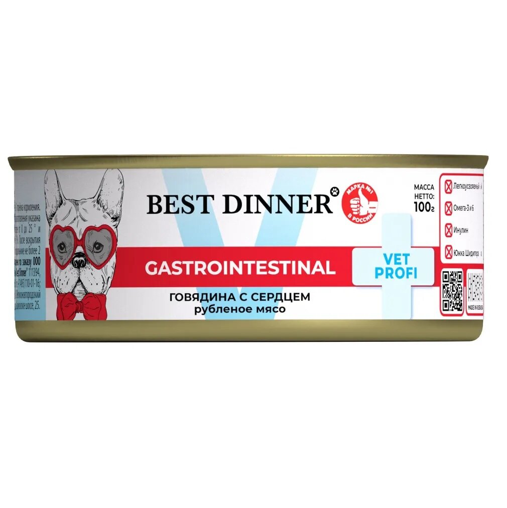 Best Dinner Exclusive Vet Profi Gastro Intestinal диетический влажный корм для взрослых собак с чувствительным пищеварением, с говядиной и сердцем, в консервах - 100 г х 12 шт
