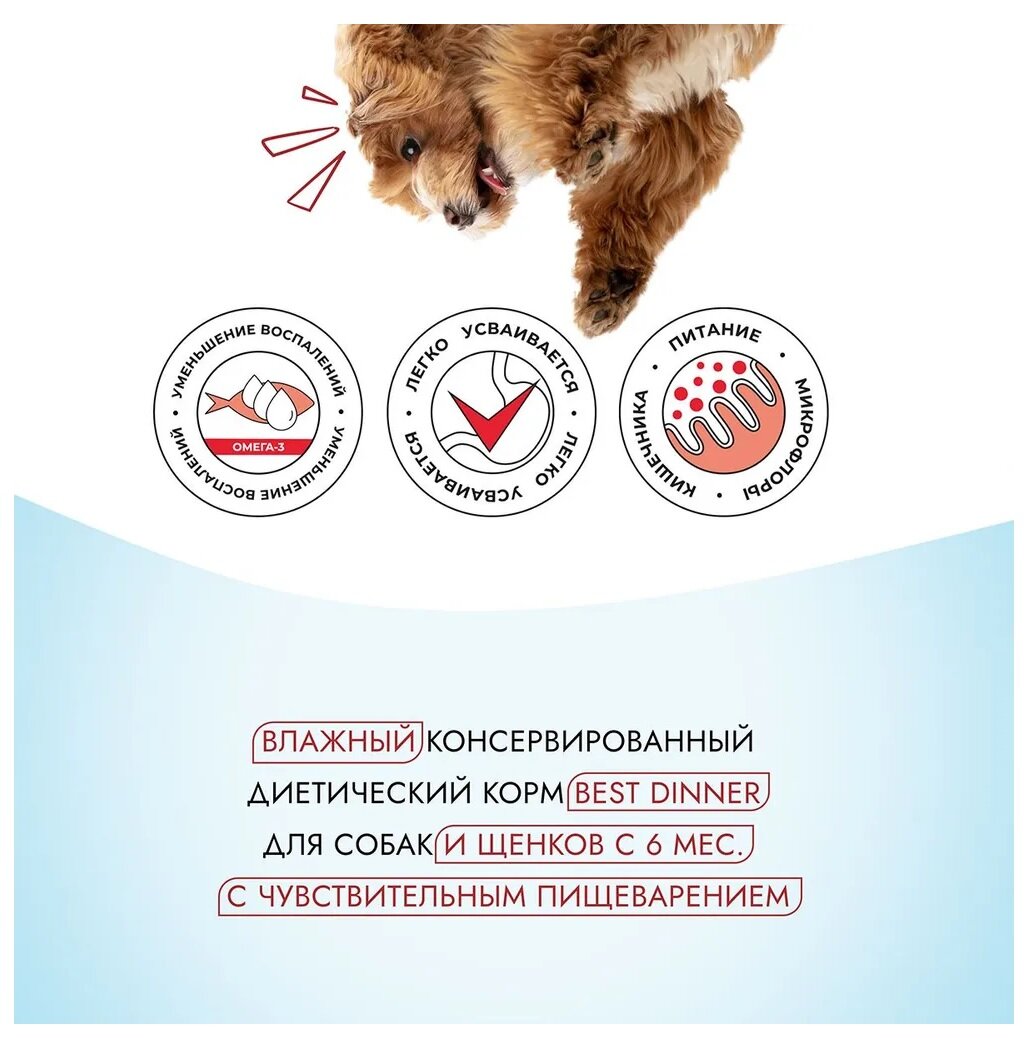 Влажный консервированный корм Бест Диннер Best Dinner для собак Exclusive Gastro Intestinal, ягненок, сердце, 340 гр. По 12 шт.