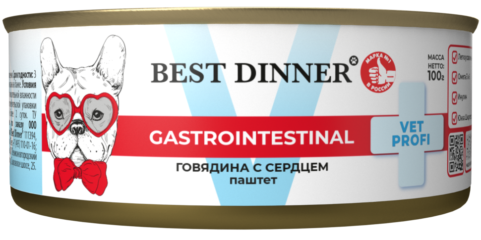 СохранитьВлажный корм для собак (консервы) Best Dinner Exclusive Vet Profi Gastro Intestinal Говядина с сердцем, 100 гр * 12 шт интересное: