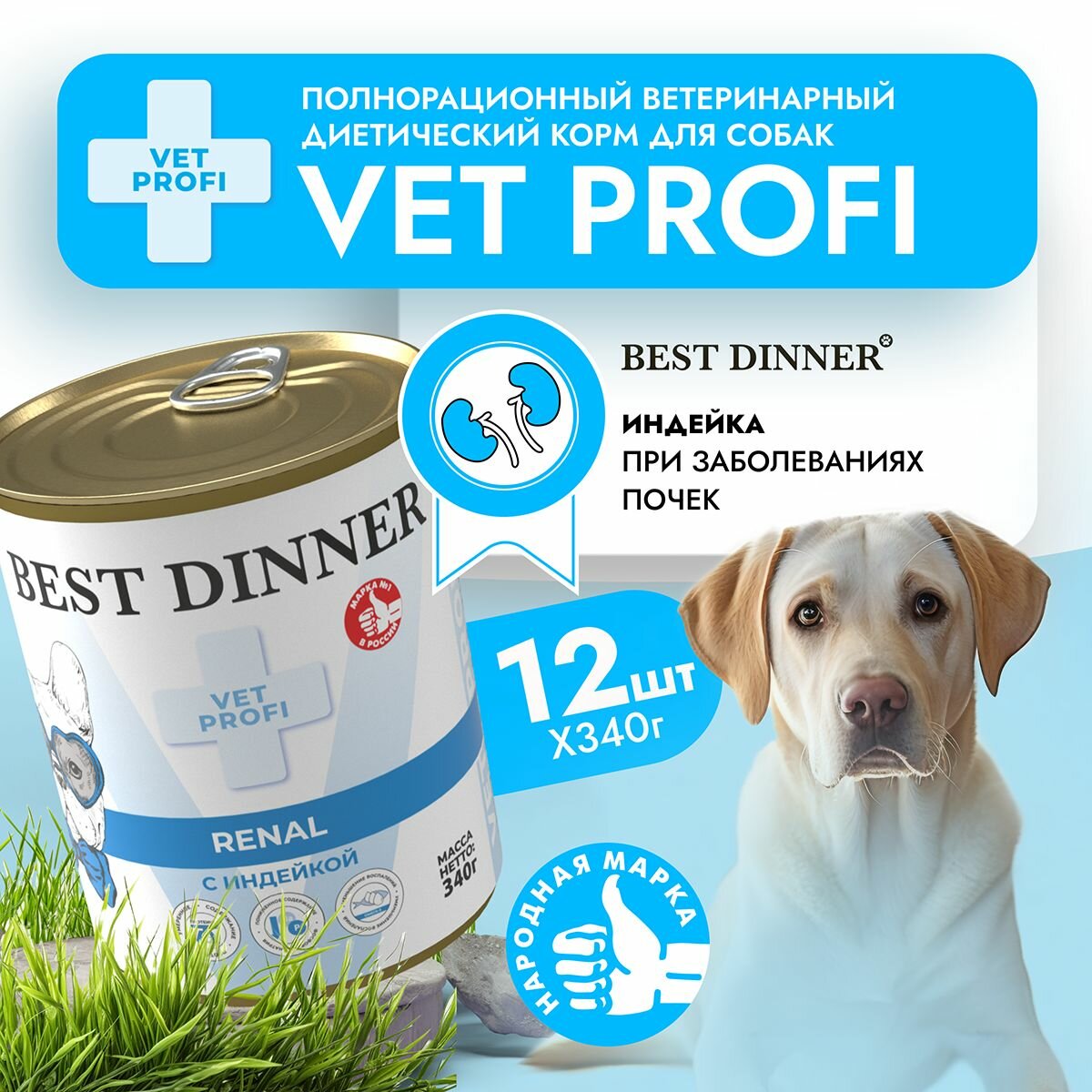 Купить Консервы Best Dinner Vet Profi Renal лечебный, для собак , при заболеваниях почек, индейка 12шт х 340г