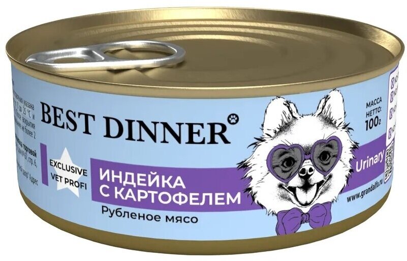 Купить Консервы Best Dinner Exclusive Urinary Vet Profi для собак всех пород с профилактикой мочекаменной болезни с индейкой и картофелем (12шт х 100гр)