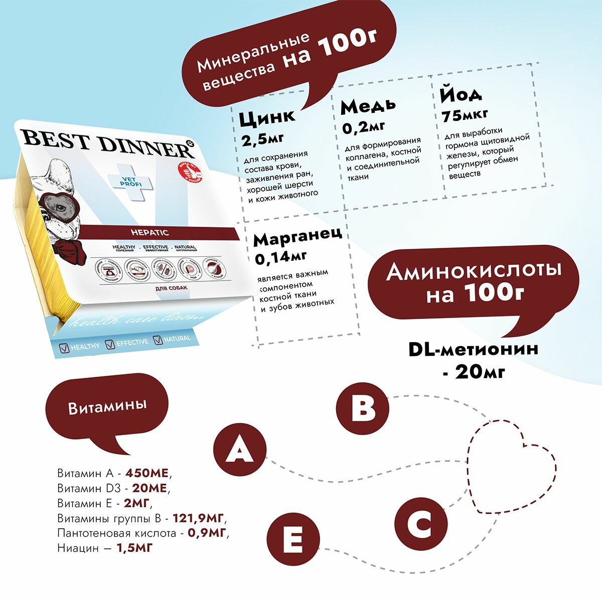 Влажный корм Best Dinner Vet Profi Hepatic для собак, с курицей, для поддержания функции печени 100гр