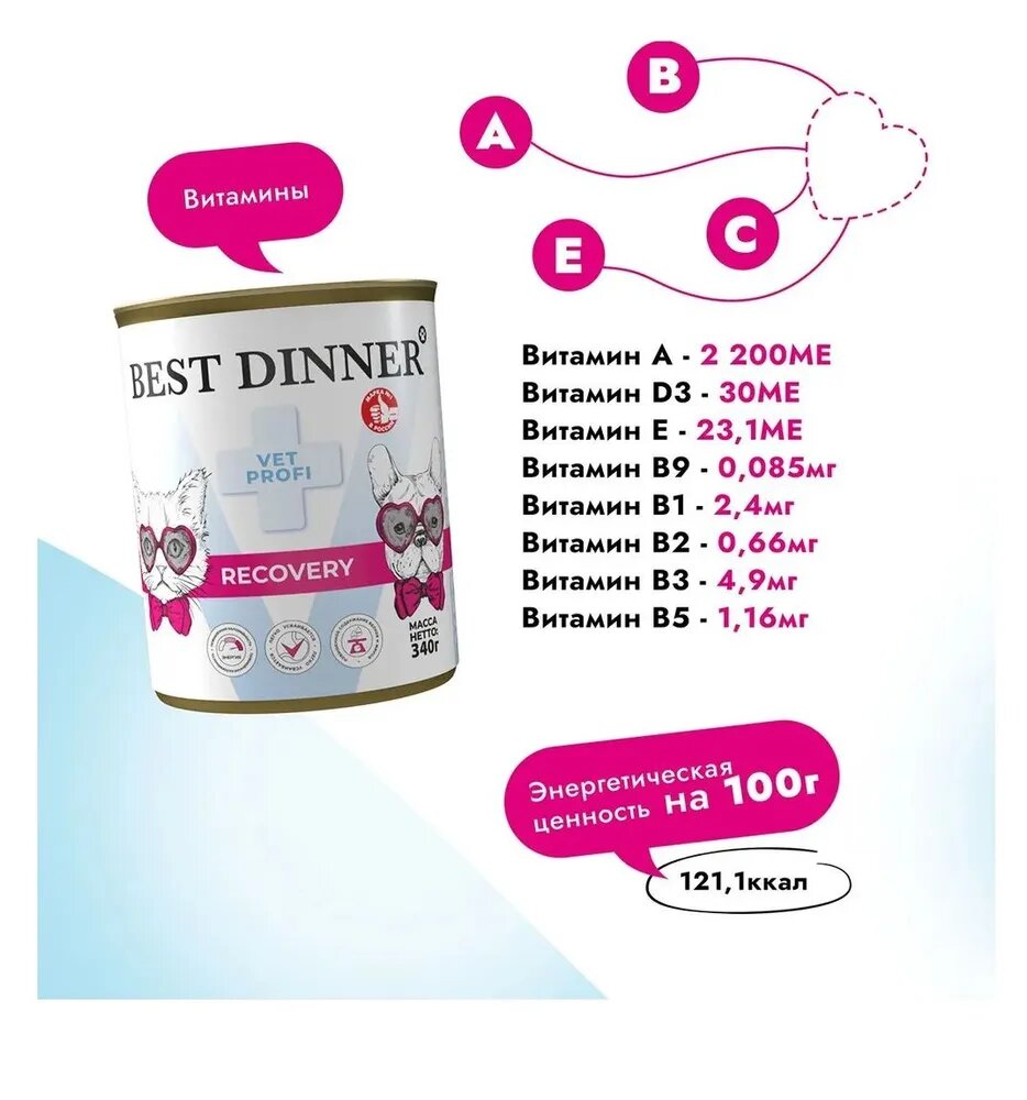 Влажный диетический корм Best Dinner Vet Profi Recovery для кошек и собак при при истощении, выздоровлении и послеоперационном восстановлении (12шт х 100гр)