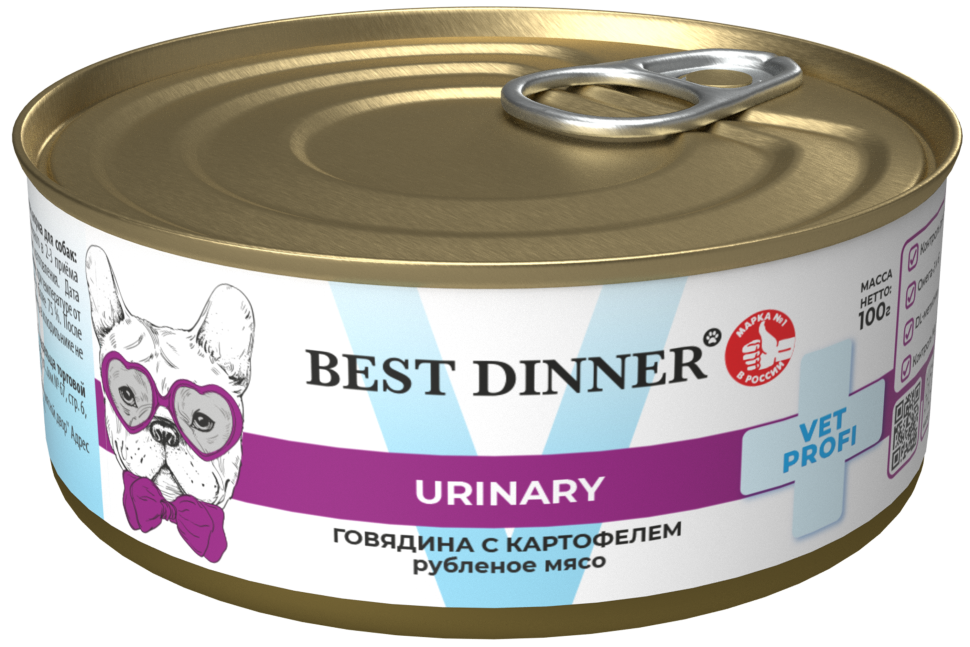 Влажный консервированный корм для собак Best Dinner Бест Диннер Urinary "Говядина с картофелем" Exclusive VET PROFI 100 гр. по 24 шт.