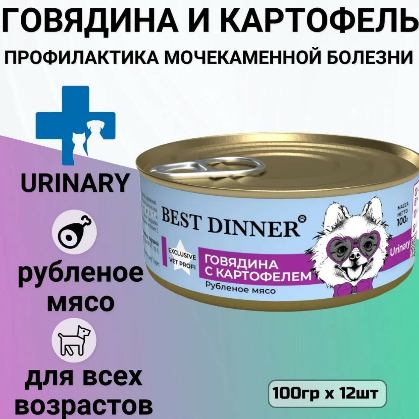Купить Best Dinner Exclusive Vet Profi Urinary влажный корм для собак для профилактики МКБ с говядиной и картофелем, в консервах - 100 г х 12 шт