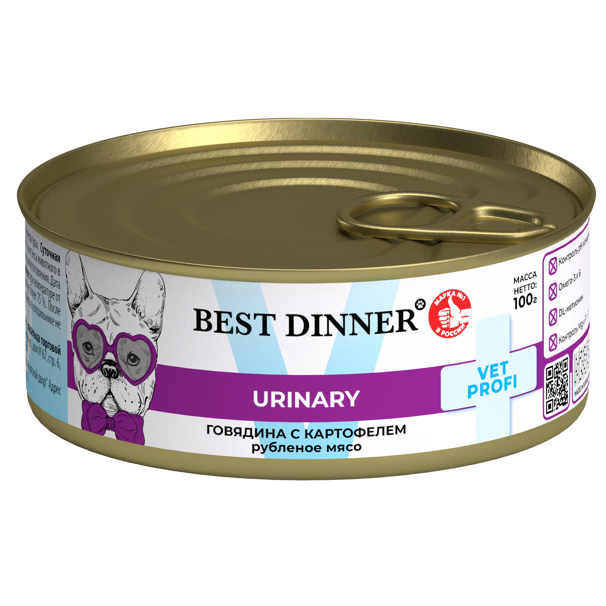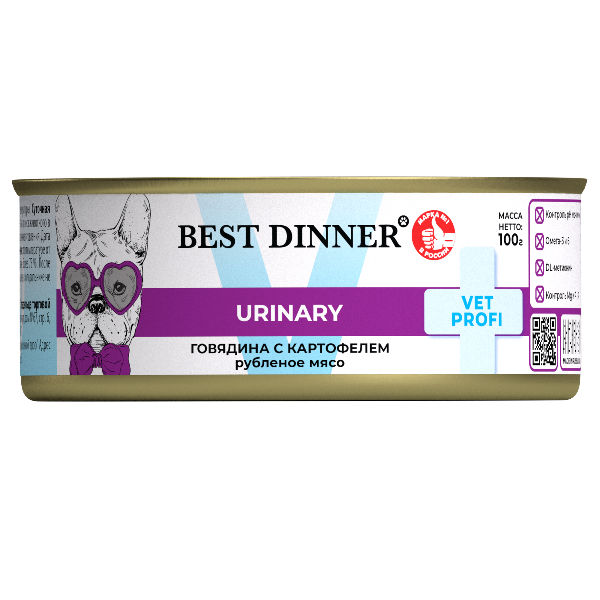 Best Dinner Exclusive Vet Profi Urinary влажный корм для собак для профилактики МКБ с говядиной и картофелем, в консервах - 100 г х 12 шт