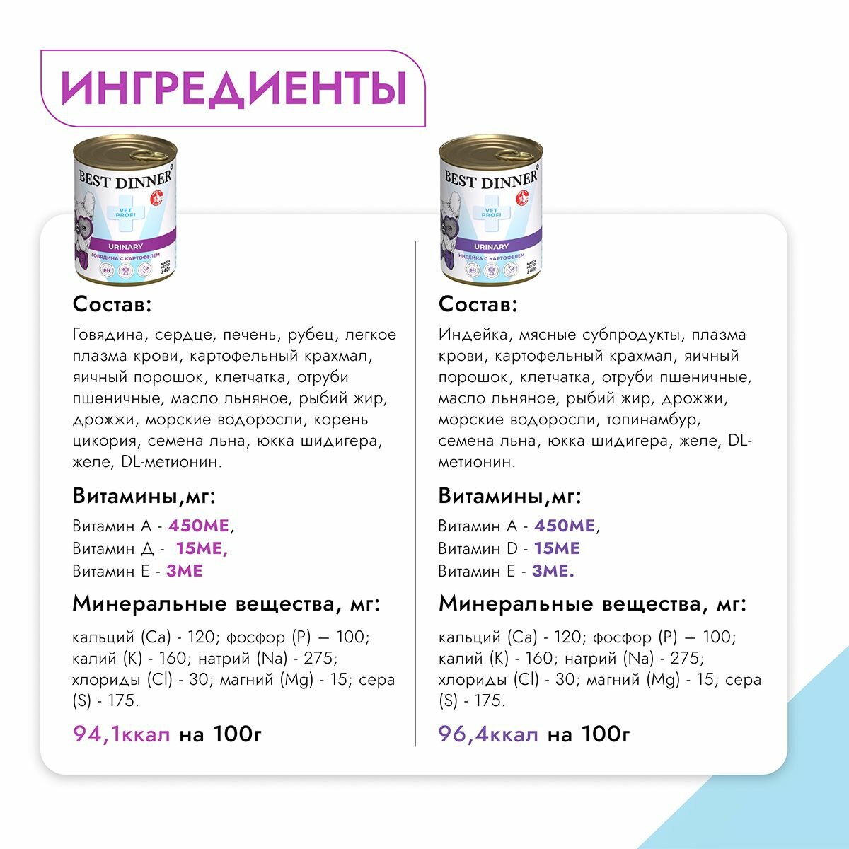 BEST DINNER EXCLUSIVE VET PROFI URINARY для взрослых собак и щенков при мочекаменной болезни с индейкой (340 гр х 12 шт)