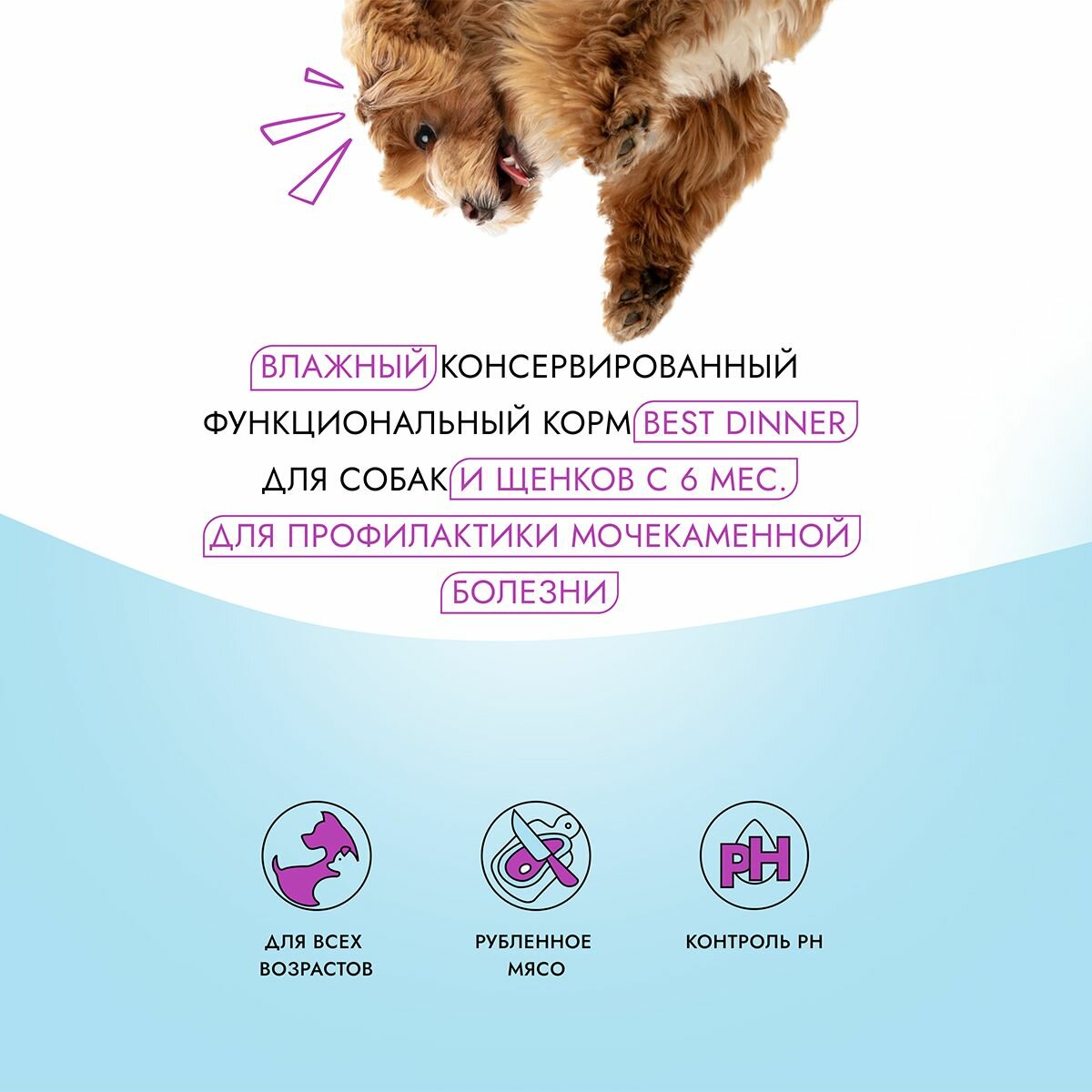 Влажный консервированный корм для собак Best Dinner Бест Диннер Urinary "Говядина с картофелем" Exclusive VET PROFI-340 гп. По 6 шт.