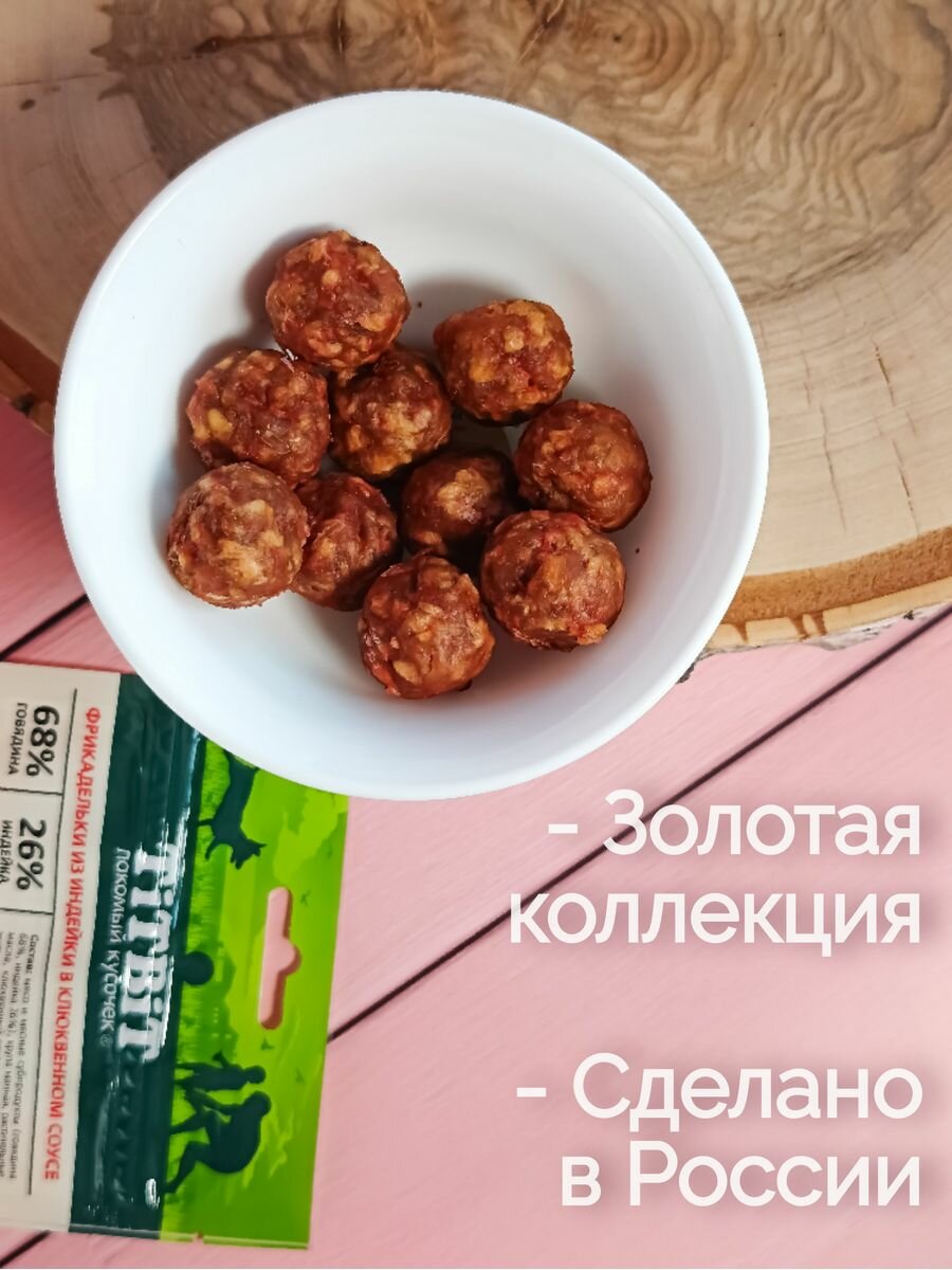 СохранитьЛакомство TiTBiT золотая коллекция фрикадельки с индейкой в клюквенном соусе для собак (70 г) интересное: