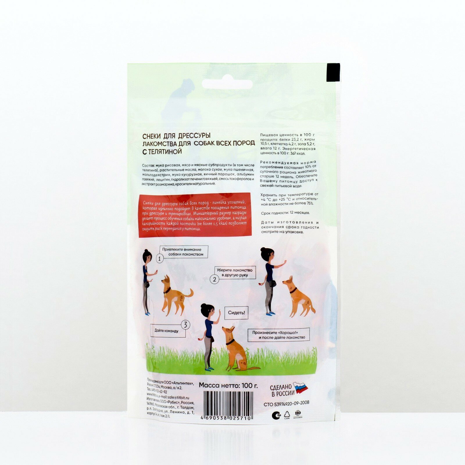 Купить Титбит 025710 Лакомство для собак всех пород Снеки для дрессуры с телятиной 100г