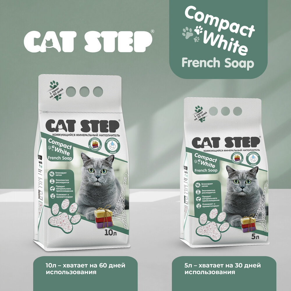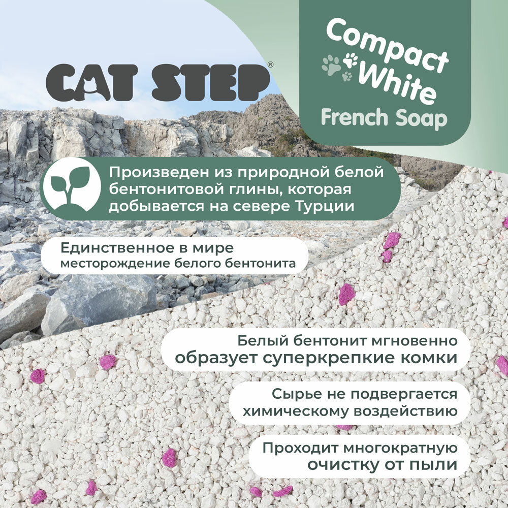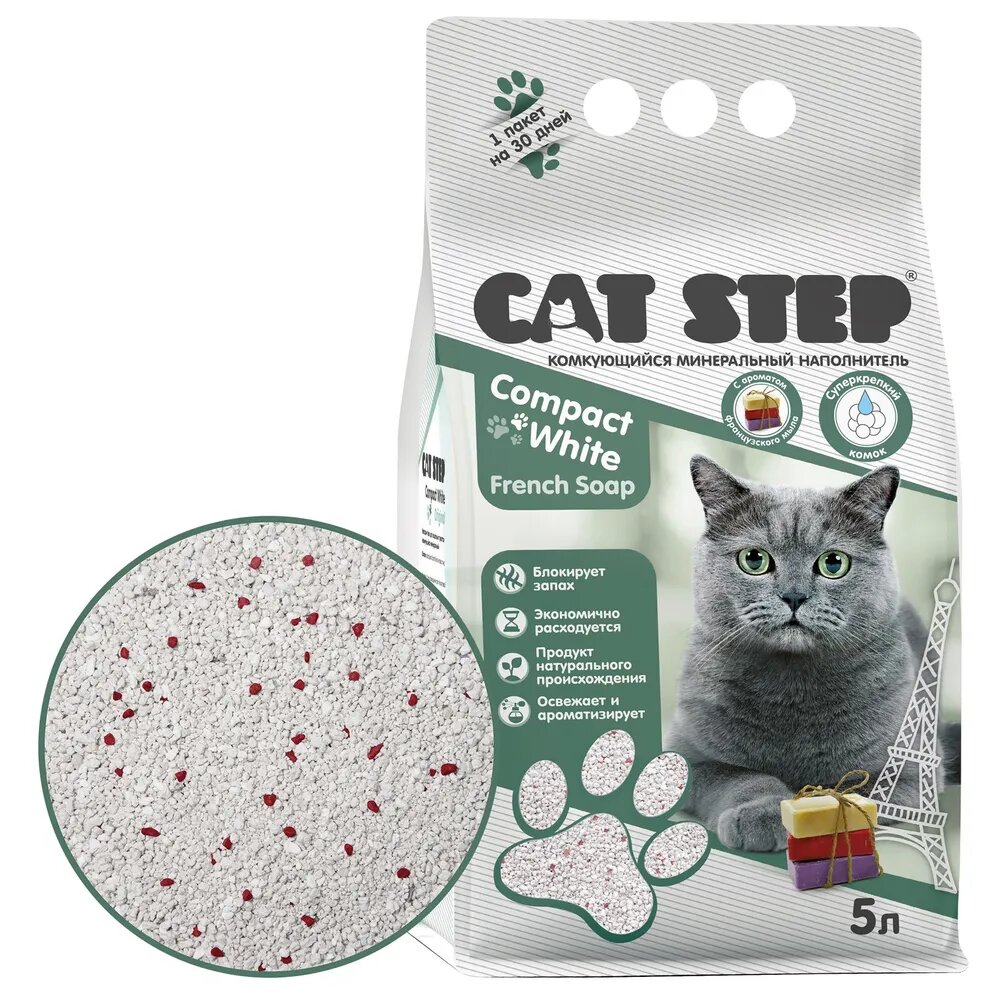 Купить Наполнитель комкующийся минеральный CAT STEP Compact White French Soap, 5 л