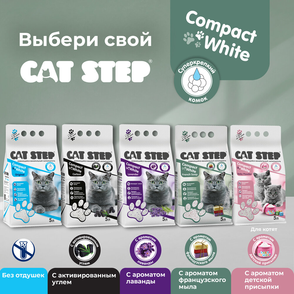 СохранитьНаполнитель комкующийся минеральный CAT STEP Compact White French Soap, 5 л интересное: