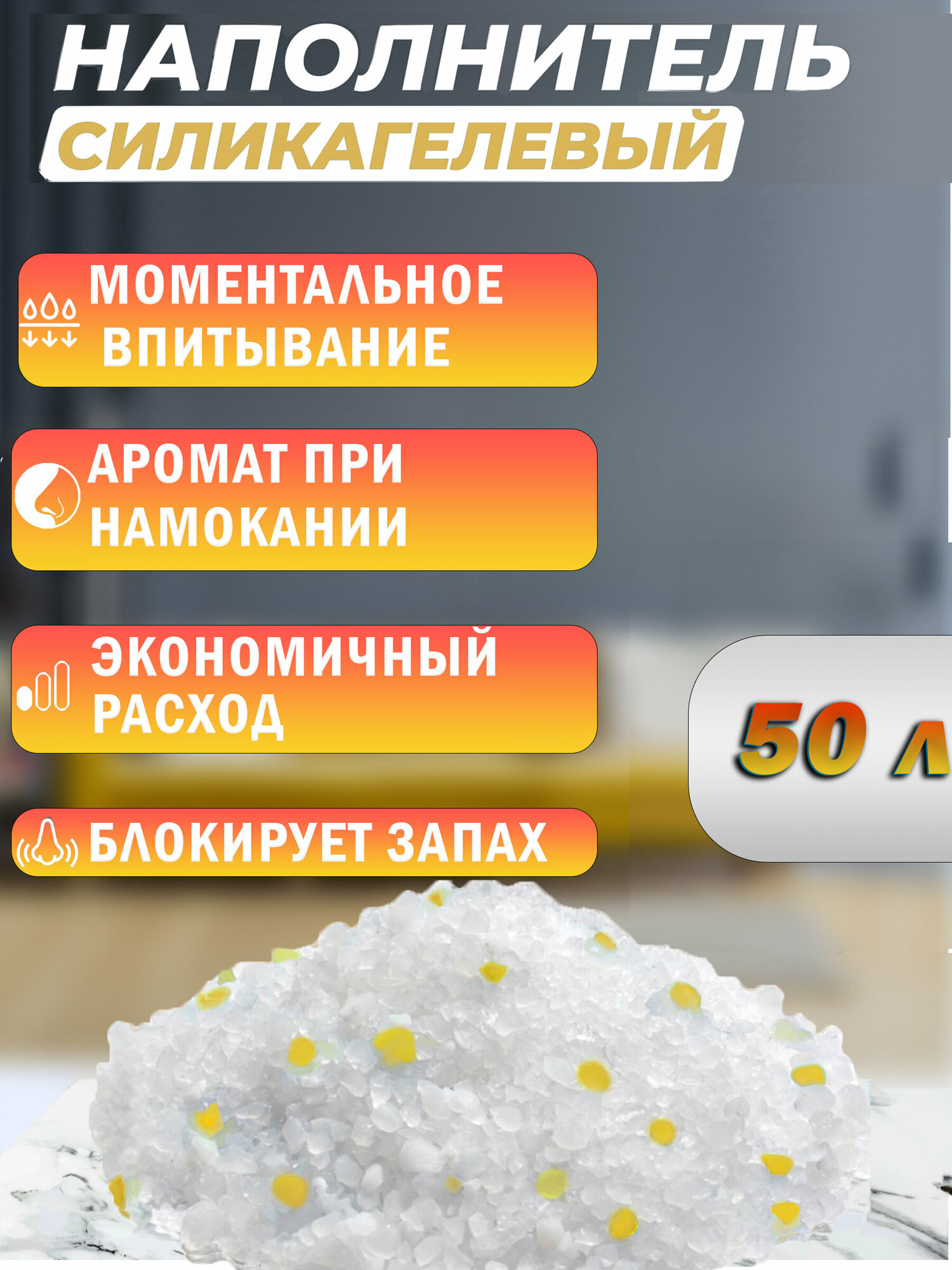 Наполнитель впитывающий силикагелевый Чистый котик колотый с ароматом Апельсина 20кг/50 л