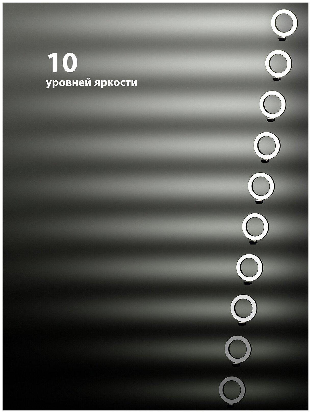 Лампа кольцевая светодиодная 16 см, 6 Вт, 2700-6400 К, штатив наст, диммер, USB, TDM