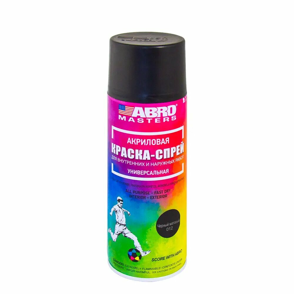 Краска аэрозольная чёрная матовая акриловая ABROMASTERS 400мл ABRO SP012AM