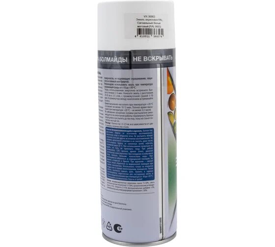 Купить VIXEN VX30903 Эмаль акриловая RAL, сигнальный белый матовый (RAL 9003), аэрозоль 520 мл VIXEN VX30903