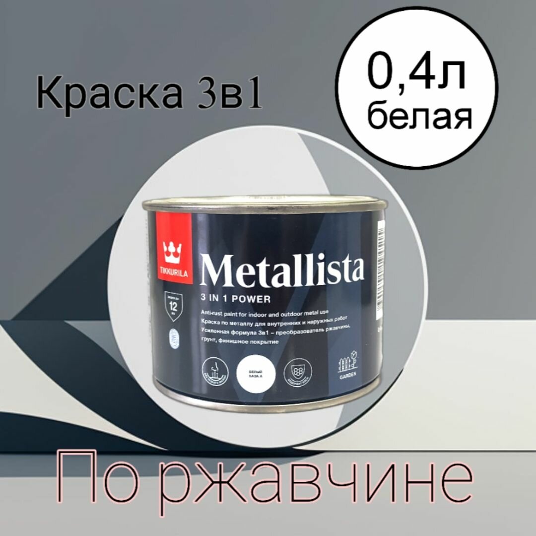 Купить TIKKURILA METALLISTA краска по ржавчине 3в1 (глянцевая, база A, 0,4 л)