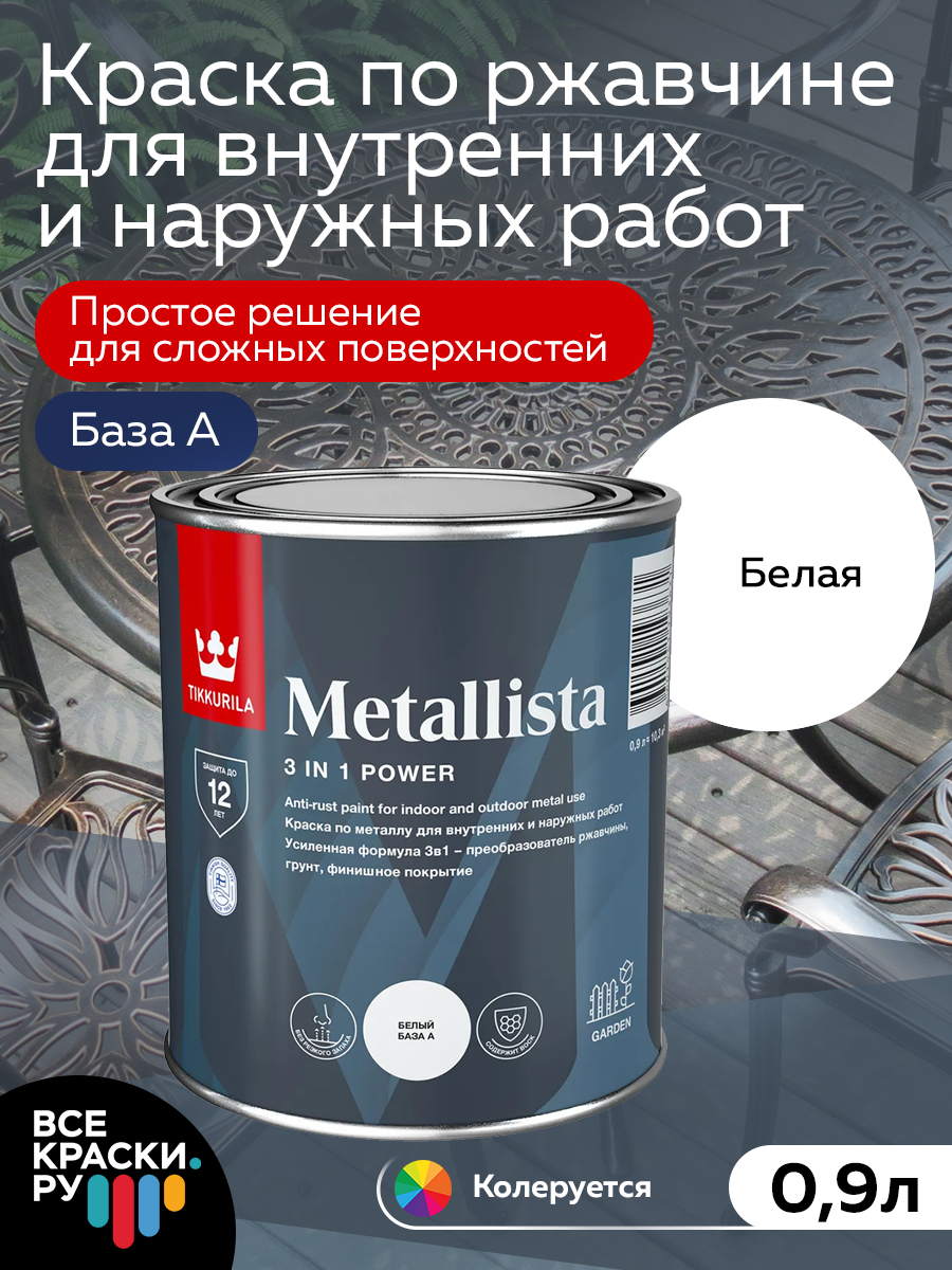 Купить TIKKURILA METALLISTA краска по ржавчине 3в1 (глянцевая, база A, 0,9 л)
