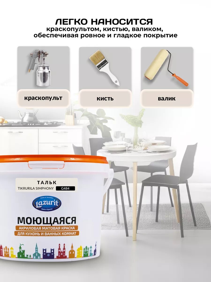 СохранитьLAZURIT Моющаяся краска для кухонь и ванн 3кг/G484 тальк интересное: