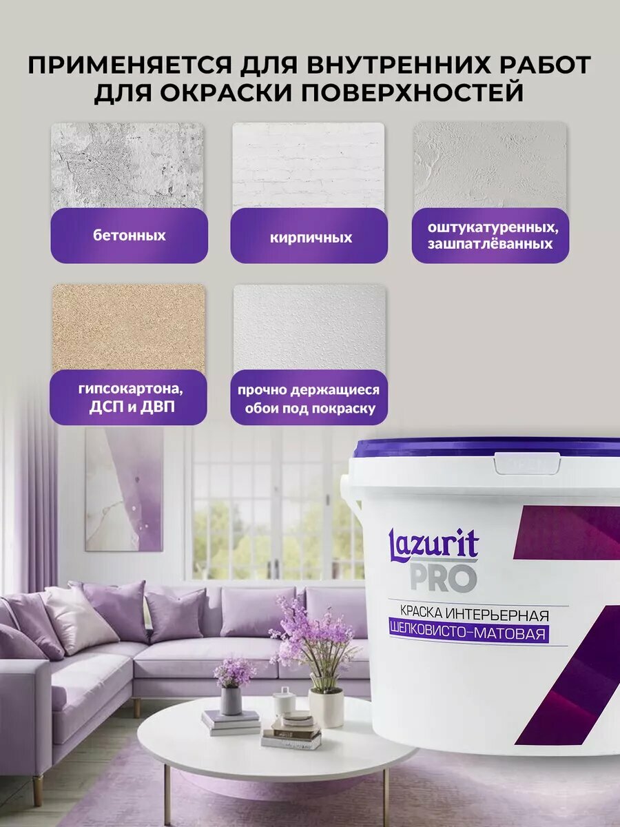 СохранитьLazurit PRO 7 Краска Интерьерная шелковистая 9л база С интересное:
