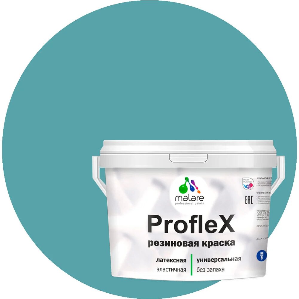Краска резиновая Malare ProfleX для фасадов, интерьера, мебели, кровли, цоколей, универсальная, эластичная моющаяся, быстросохнущая, без запаха, матовая, морская волна, 2 кг.