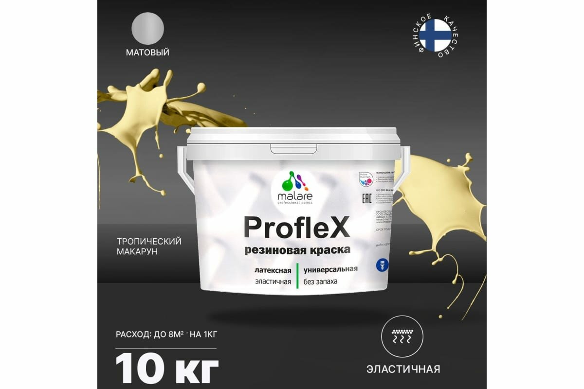 Купить Краска резиновая Malare ProfleX жидкая резина для наружных и внутренних работ, быстросохнущая моющаяся, матовая, тропический макарун, 10 кг