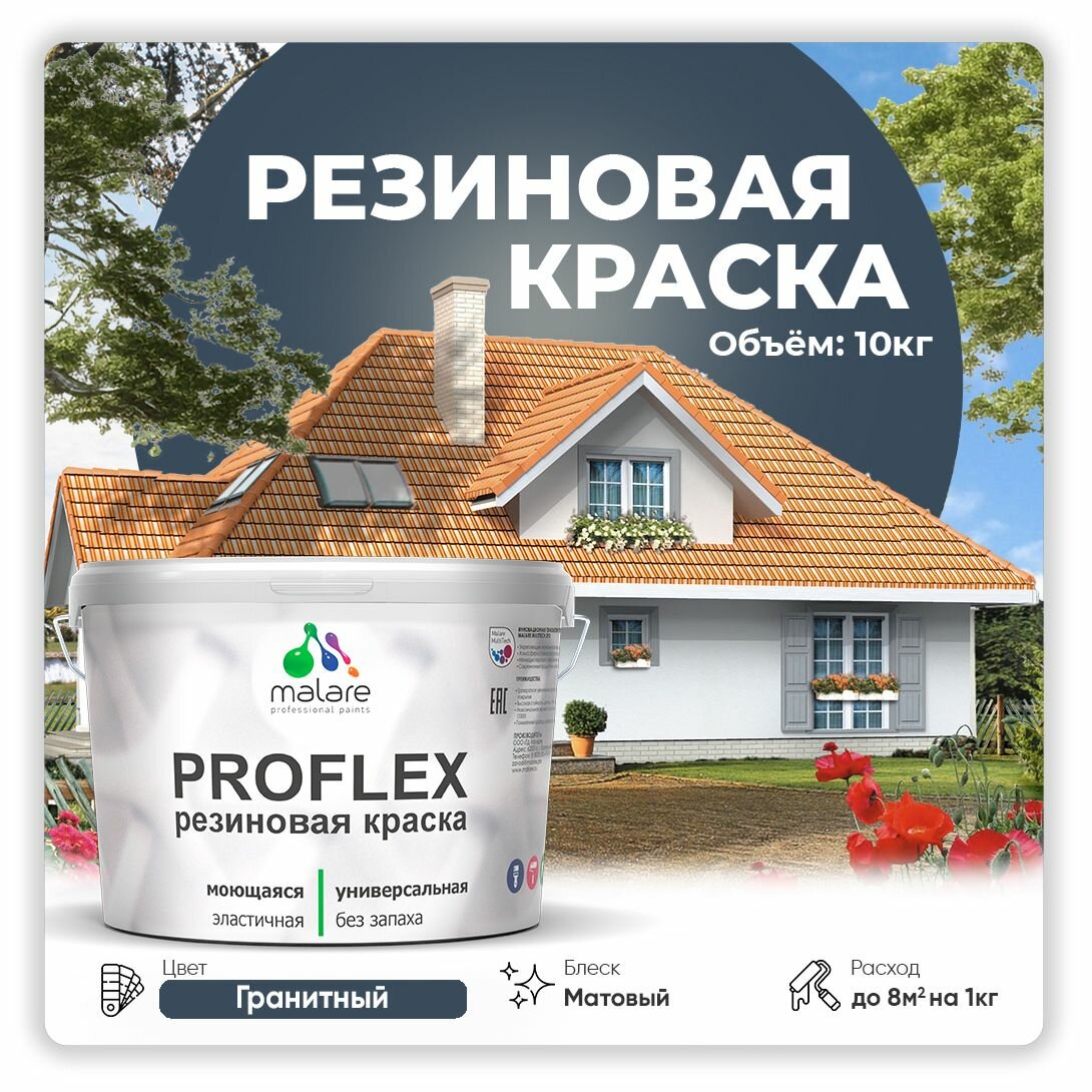 Купить Краска резиновая Malare ProfleX жидкая резина для наружных и внутренних работ, быстросохнущая моющаяся, матовая, гранитный, 10 кг
