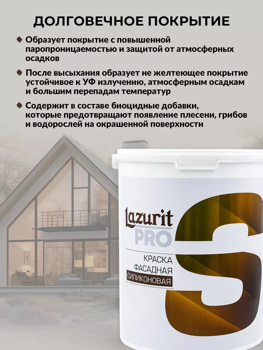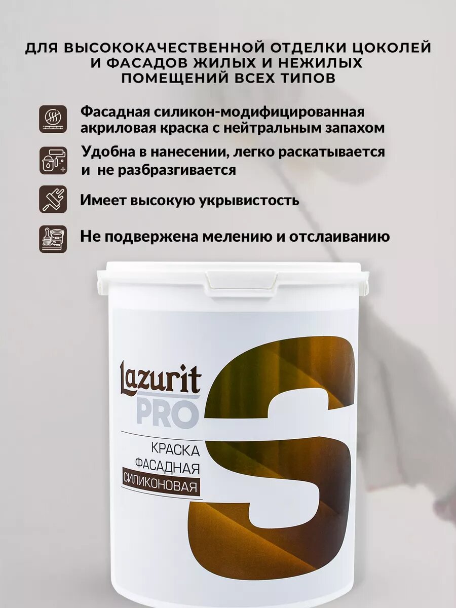 СохранитьLazurit PRO Краска Силиконовая фасадная матовая 4,5л интересное: