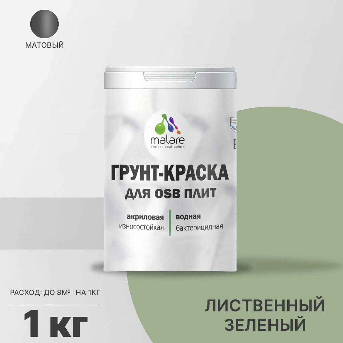 Краска Malare для OSB плит, деревянных и минеральных поверхностей, фасадная, интерьерная, универсальная, с антисептическим эффектом, быстросохнущая, без запаха, матовая, васаби, 1 кг.