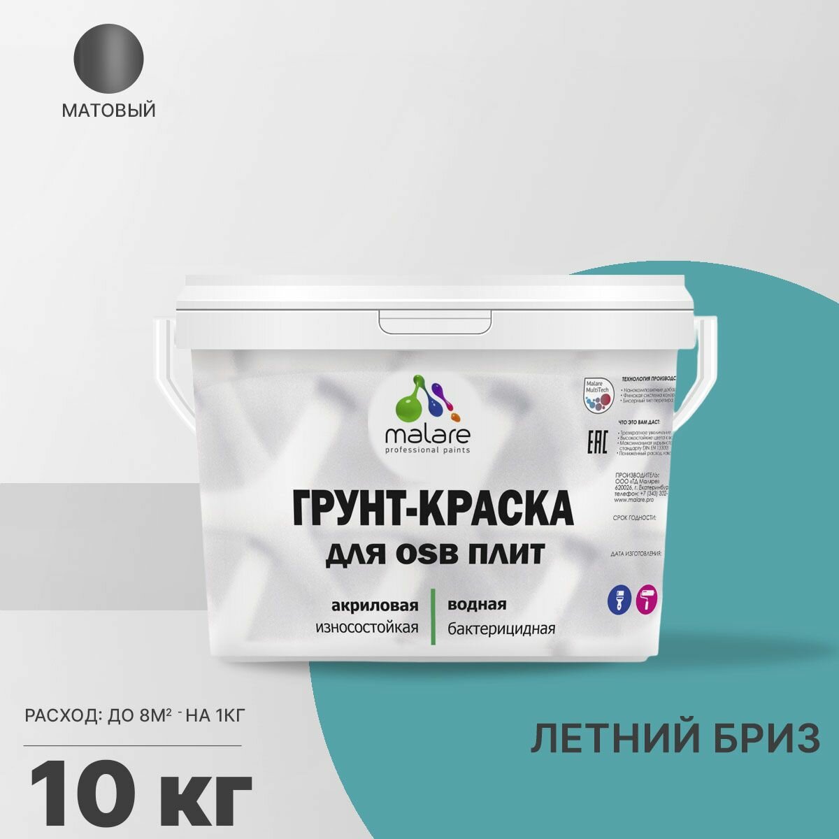 Купить Акриловая краска для ОСБ плит Malare для дерева для наружных и внутренних работ, быстросохнущая без запаха матовая, летний бриз, 10 кг
