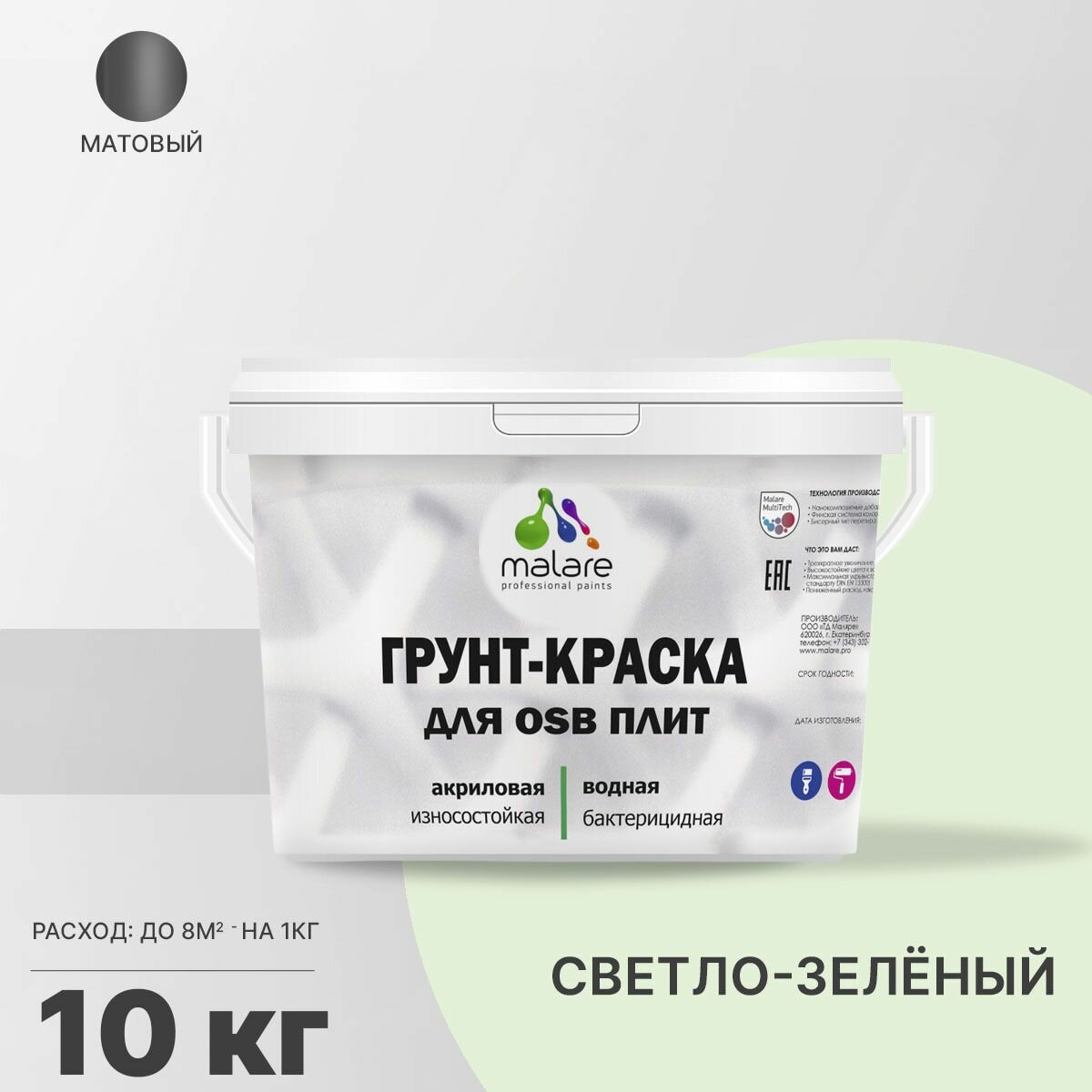 Ниже Вы можете прочитать отзывы на Акриловая краска для ОСБ плит Malare для дерева для наружных и внутренних работ, быстросохнущая без запаха матовая, светло-зеленый, 10 кг, ознакомится с подробными характеристиками, посмотреть интересные обзоры и фотографии на Акриловая краска для ОСБ плит Malare для дерева для наружных и внутренних работ, быстросохнущая без запаха матовая, светло-зеленый, 10 кг.
