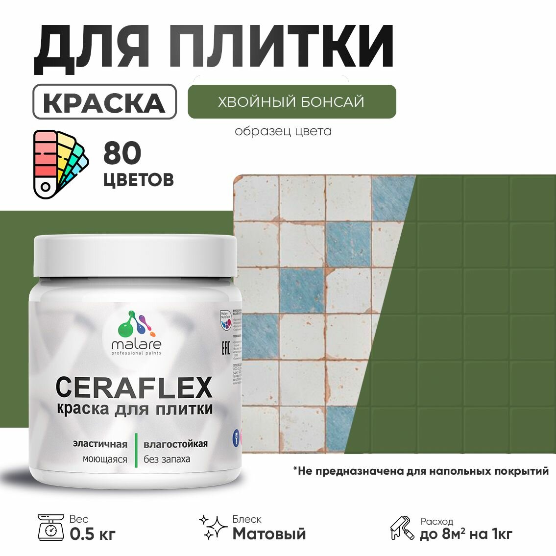 Купить Акриловая краска для плитки Malare Ceraflex для керамической и кафельной плитки, стен в кухне и ванной, моющаяся быстросохнущая без запаха, матовая, хвойный бонсай, 0.5 кг